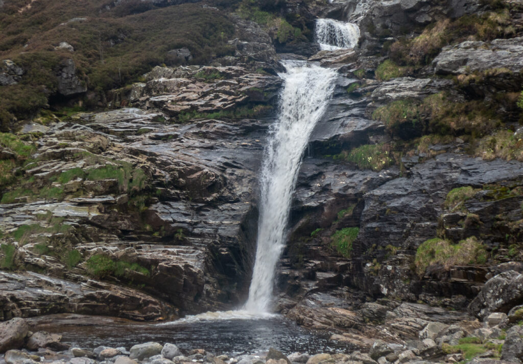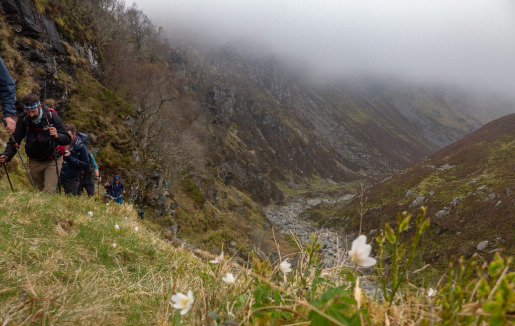 A few miles further down we left the famous mountain pass and ascended to the Chalamain Gap. After scrambling through the gap we headed to our finish at the Sugar Bowl. The gale force winds finally caught up with us on this last bit and we took a buffeting.