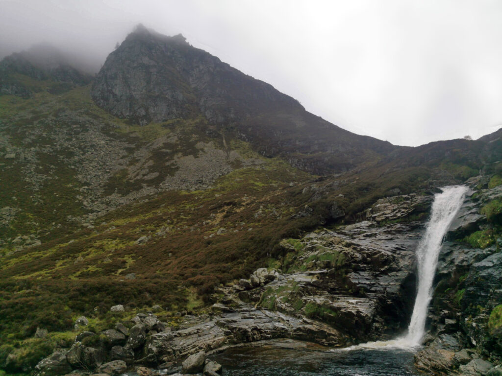 We didn’t linger for long at the trig point, just enough time to check the maps and get a few photos before heading downhill in a SE direction that quickly got us out of the wind and below the mist. Once down in the glen we followed Allt an t-Sluichd Mhoir then the Waters of Nochty which meander down through the hills, and eventually after several tricky river crossings we arrived back at Duffdefiance. The rain started as we walked back down Glen Nochty, but we were glad the day had been mostly dry for this enjoyable circuit in the Ladder Hills.