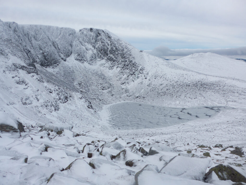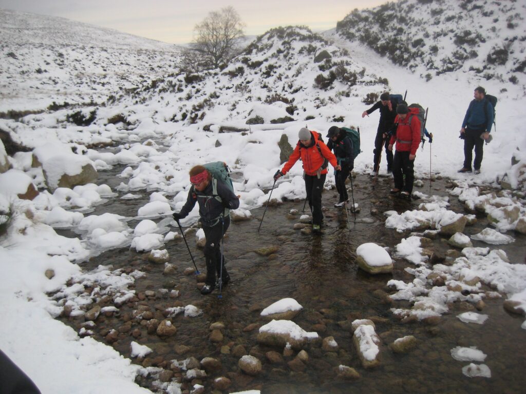 The minibus will be leaving Aberdeen at 7am, and can pick up on route through Deeside to Braemar. Starting at Auchallater, there are options for both long and short hikes. There’s an easy track to the bothy beside Loch Callater, and from there it’s not far to the Corbett, Creag nan Gabhar. The main target for those looking for a longer outing will be munro Tolmount, along Jock’s Road to the head of Glen Callater. If conditions are “in”, there may be the possibility to do a gully ascent from Loch Kander. Of course, you may wish to take it easier and just chill at the bothy, with a great view over the loch.