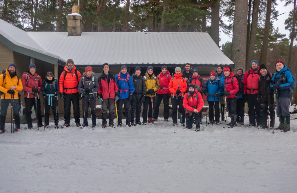 17 of us started at Linn o’ Dee. Derry Lodge was reached in good time, and there the 3 runners amongst us nipped on ahead. The rest of us hiked.