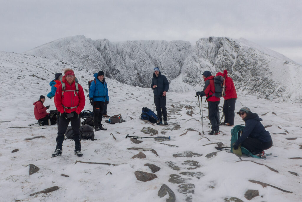 The classic anti-clockwise route had about 15 of us summit, with 2 smaller groups working their way around the Lochan – one heading up the north-east ridge, and the other up Black Spout gully.