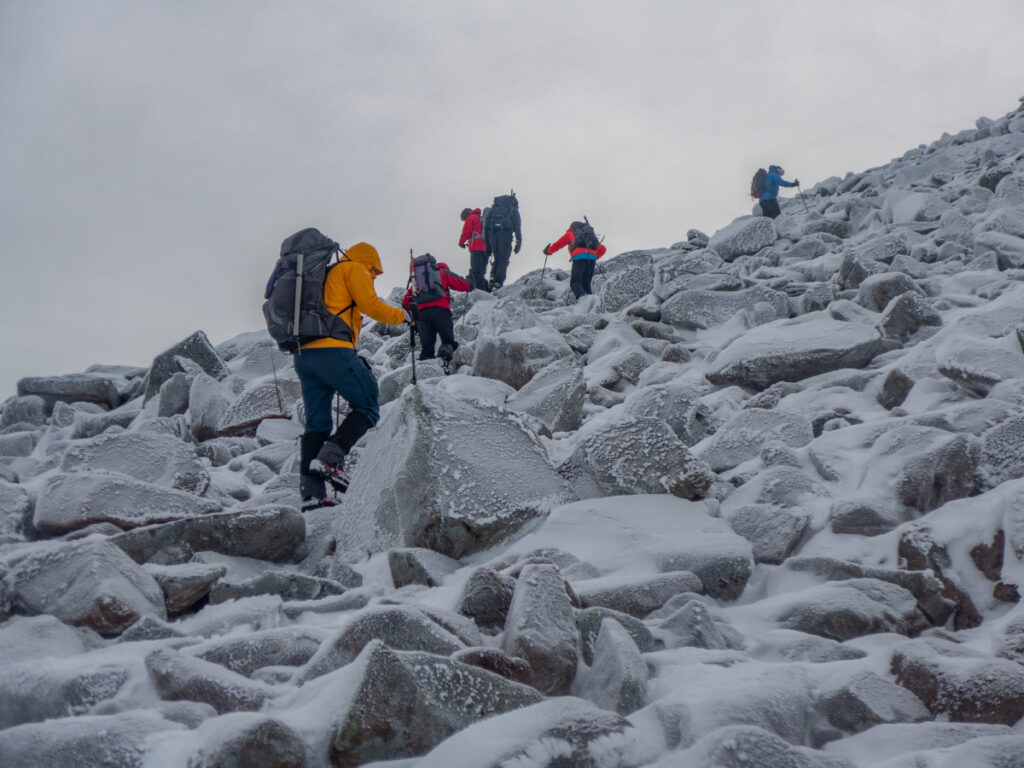 Our Ben Macdui trip saw high winds hinder progress, with the group heading for the top deciding to turn back from Cairn Lochan, head past Lurcher’s Crag and finally get a sheltered break in the Chalamain Gap. A second group made it over and down Coire Raibert to the Shelter Stone, then back via Coire Domhain. All back in time despite the tough conditions so a nice break at the pub in Aviemore before the coach headed back to Aberdeen.