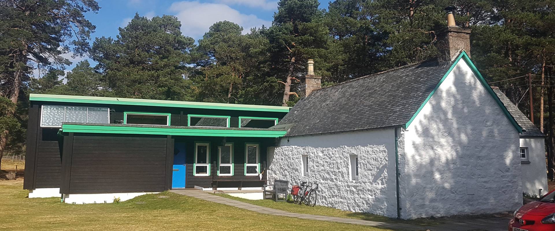 The Club has had the use of Muir Cottage for some seventy years, beginning with a lease of the original stone cottage. In 1971 it became possible to purchase the site through the generosity of a former Club member, Dr. George A. Taylor, who on his death in 1965 had bequeathed to the Club a quarter of the residue of his estate. The cottage was then considerably expanded by the construction of a substantial timber extension for the sleeping accommodation and toilet/washroom facilities, with the old toilet/washroom becoming a kitchen. In 2004, with funding from Cairngorm Leader+, Aberdeenshire Council and Aberdeen City Council, Awards for All, the Scottish Mountaineering Trust, and other donors including Club members, alterations were undertaken to allow use of the cottage by disabled persons and to form a larger better equipped kitchen.