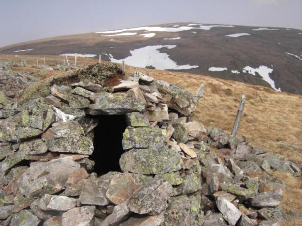 There is a small howff (or shelter) on the ridge out to Creag Leacach. It’s not much to write home about but it does give protection from the elements…