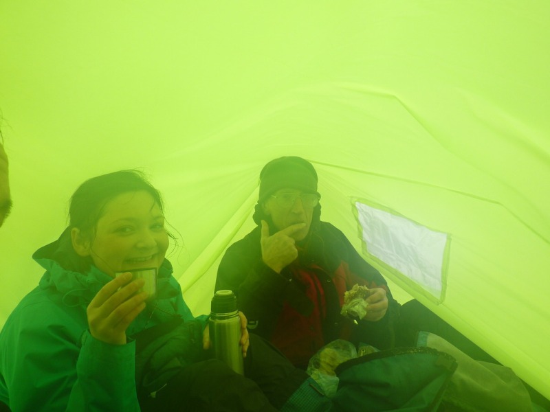 late breakfast tea stop in amongst the trees with views up the