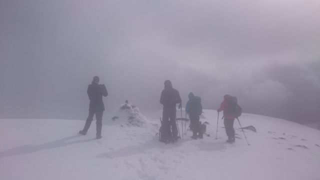 Carn Dearg and Sgor Gaibhre. Poor visibility and high winds