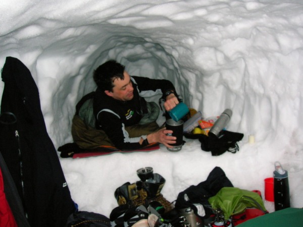 at about GR 010067 for our snow hole at around 11am. It took between 3 and 4