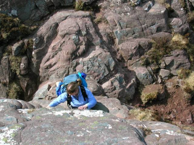 Angela getting to grips with the rock