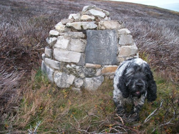 By the cairned shelter which houses a trig